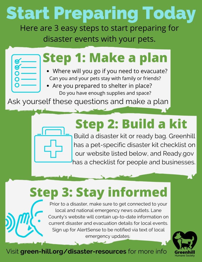 - Animal Preparedness information can be found on the Lane County Animals in Disaster site here.