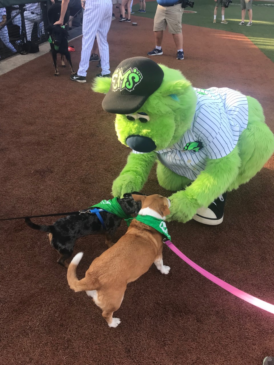 All dogs will need their own ticket which is $3. Individuals with a dog must enter through the home plate gates. Individuals can select their seat and select an additional seat for their pooch. Rows 5 and up are available for humans with dogs. When purchasing your ticket, click on your ideal seat then look to the right of the screen and click on the pencil icon next to your desired seat. This will give you the option to buy the pooch pass for $3. Your pup will get the seat right next to you!