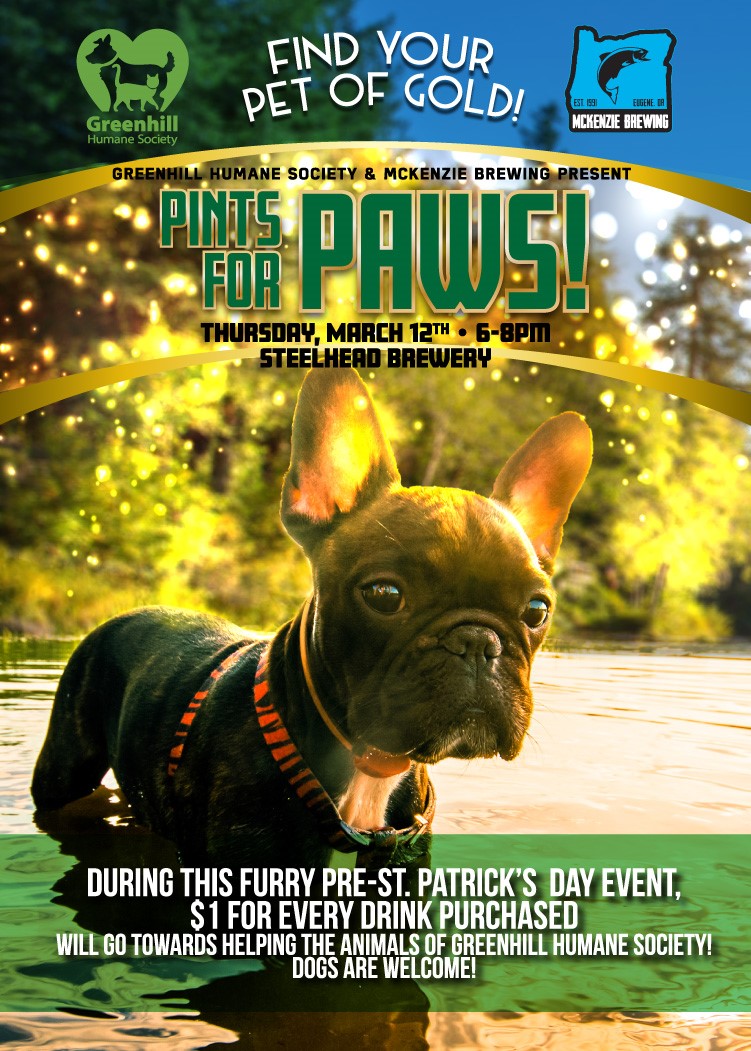 St. Patrick’s Doggie Social at Steelhead Brewery, March 12, 6-8 p.m.