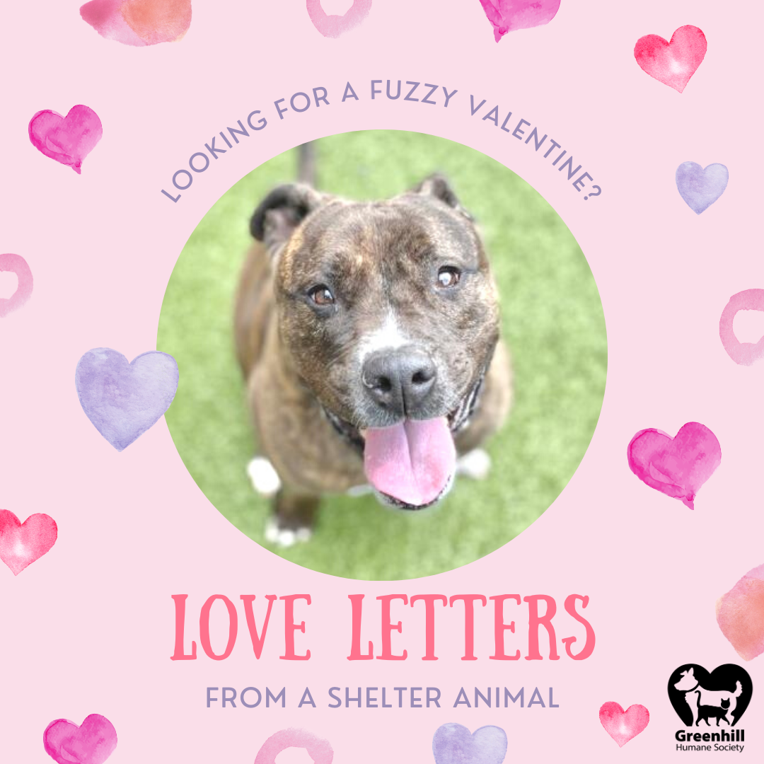 This Valentine’s Day, brighten someone’s day with a gift of unconditional love from a shelter pet! For a small donation, you can send a special someone a Love Letter from a Greenhill Shelter animal!