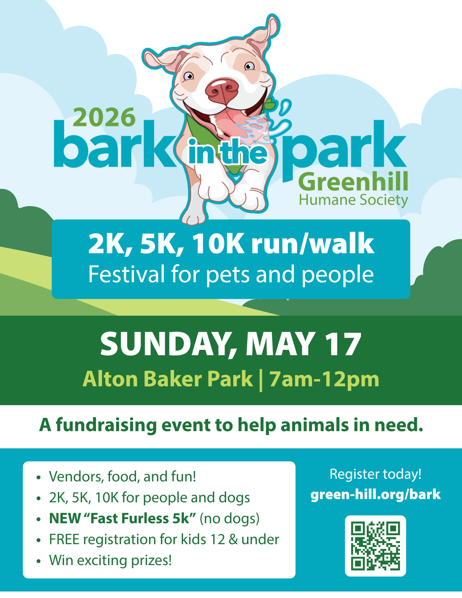 33rd Annual Run / Walk for the Animals! Sunday May 17th, Alton Baker Park NEW: FAST FURLESS 5K run (no dogs) starts at 8:30 AM 5K & 10K run/walk with or without dogs starts at 9:05 AM 2K run/walk with