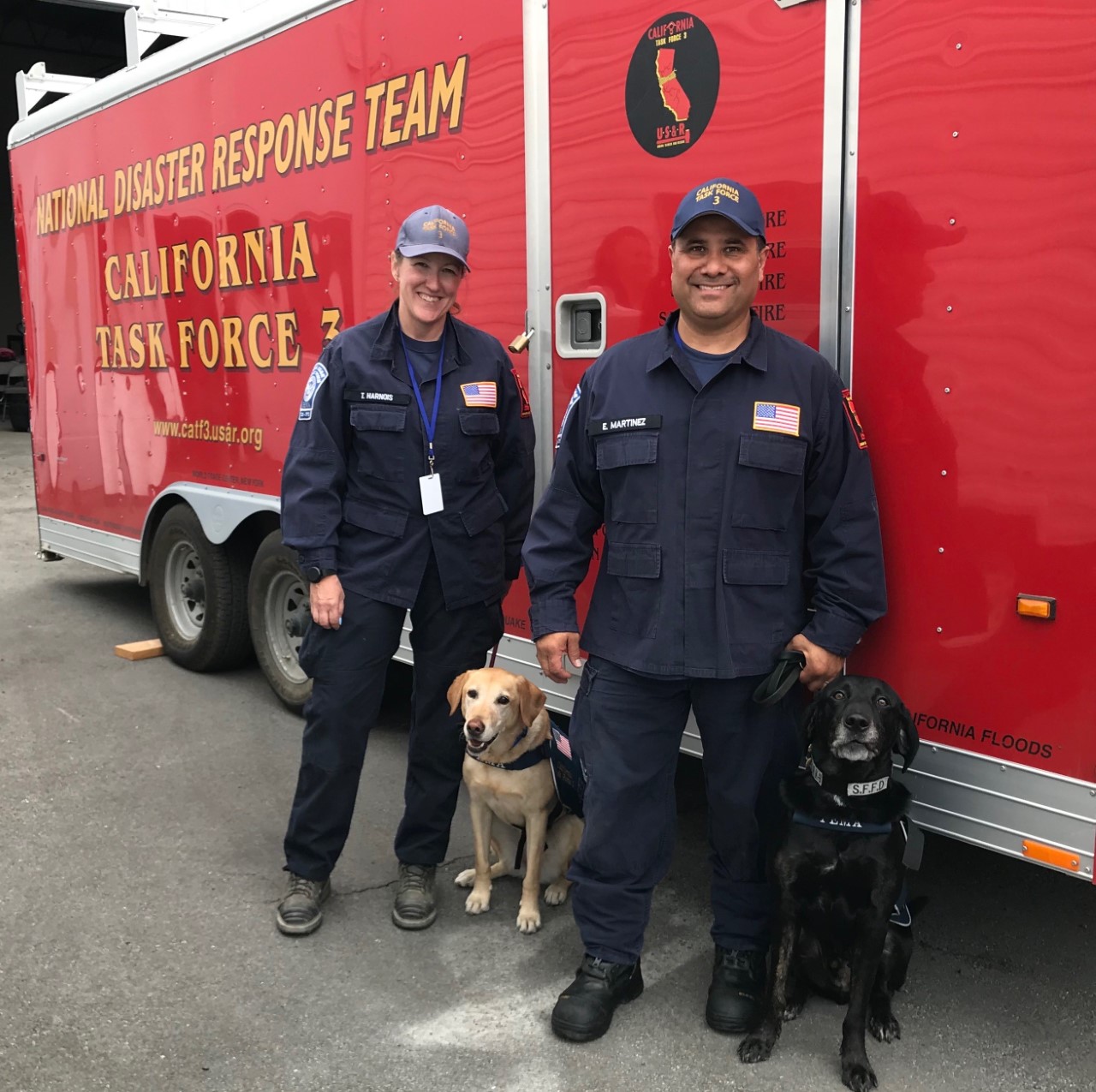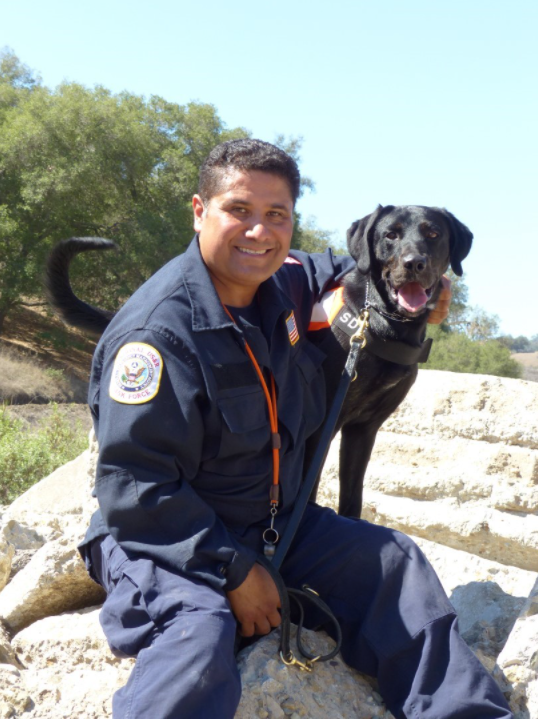 While in training, an SDF Master Trainer noticed Fritz enjoyed finding hidden “victims” and barking for his toy! From there, he was partnered with his new handler, Ed Martinez of San Francisco Fire Department and California Task Force 3, in 2015. They achieved their FEMA Certification which enabled them to deploy nationwide in the event of a disaster.