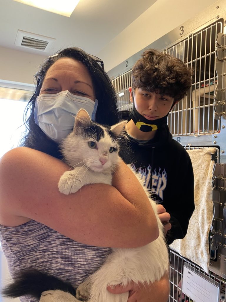 Greenhill, alongside Lane County Animal Services and an Animal Rescue Team from The Humane Society of the United States, successfully rescued Gismo from the evacuation zone in Vida. Gismo was brought to the shelter for care where he quickly got comfortable and could relax. Our team was able to track down a family that lived near the site he was found and confirmed Gismo was one of their two cats that went missing during the fire. They soon came to the shelter and were SO HAPPY to be reunited with their beloved cat. 💕😻 Since then, we have been working hard to find Gismo’s brother! On 10/8, we successfully rescued and reunited them with their other kitty, Tyrone! Although this tragic event left this family apart for a few weeks, they are very grateful to have Gismo and Tyrone safe and home with them!