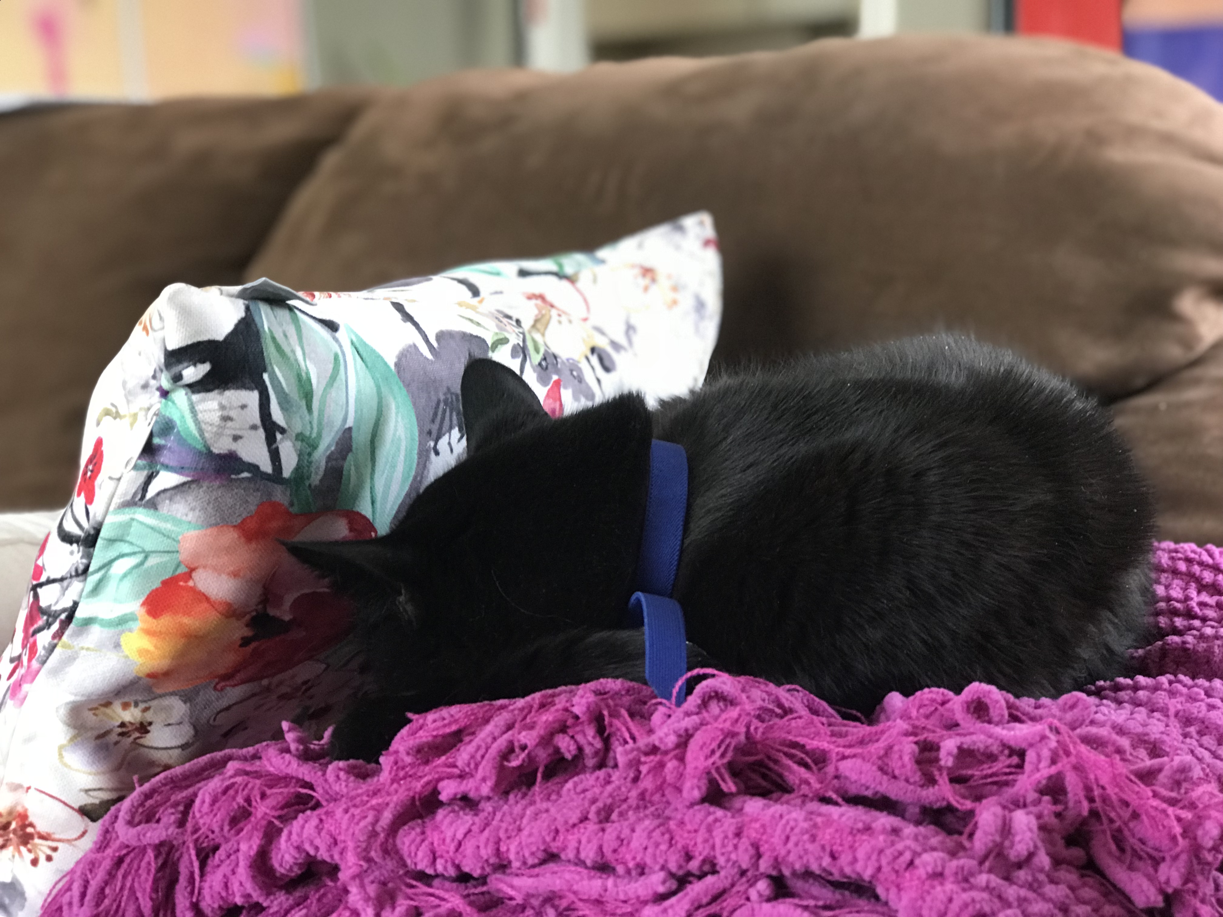 “I can’t believe how quickly he’s become comfortable in my house. I left him alone in my kitchen for a couple hours right after I brought him home, and then I came back and let him explore the rest of the house,” she added. “He’s investigated everything and is relaxed and confident… not skittish or nervous at all. About 20 minutes into his exploration he decided it was time to rest, and he sprawled out in the middle of my living room. I could hardly believe it. He’s so at ease!”