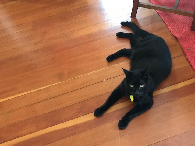 “This is Biff. He is a 13 year old Tabby and he is our new family member. We just adopted him today and he’s taking to his new home really well.”