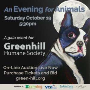 Tickets for An Evening for Animals can be purchased by Friday, October 11 here (https://www.green-hill.org/gala).
