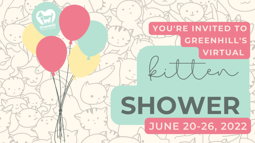 Keep an eye on our website to see all of the sweet kittens looking for their forever homes. If you see a kitten that steals your heart please visit Greenhill between 11 am – 4 pm. All adoptions will be on a first come first serve limited capacity basis.