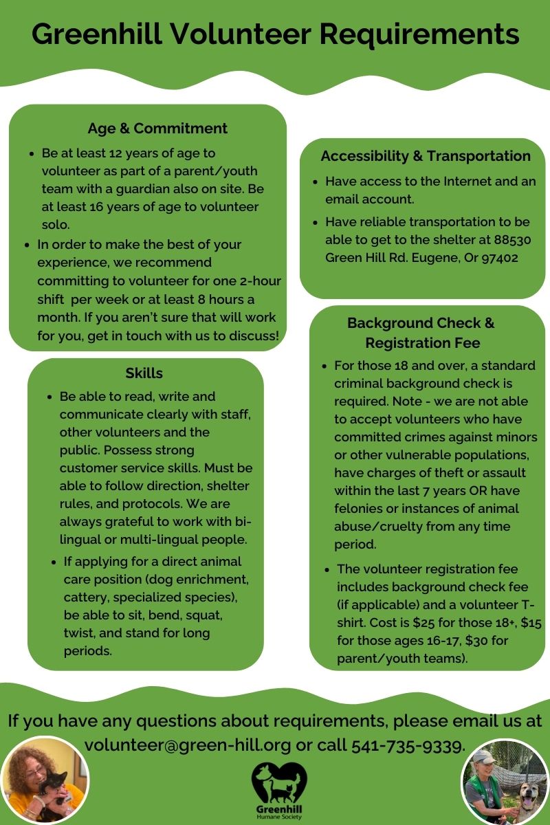 Without our volunteers, Greenhill could not provide its current high level of service to the animals and people of our community!