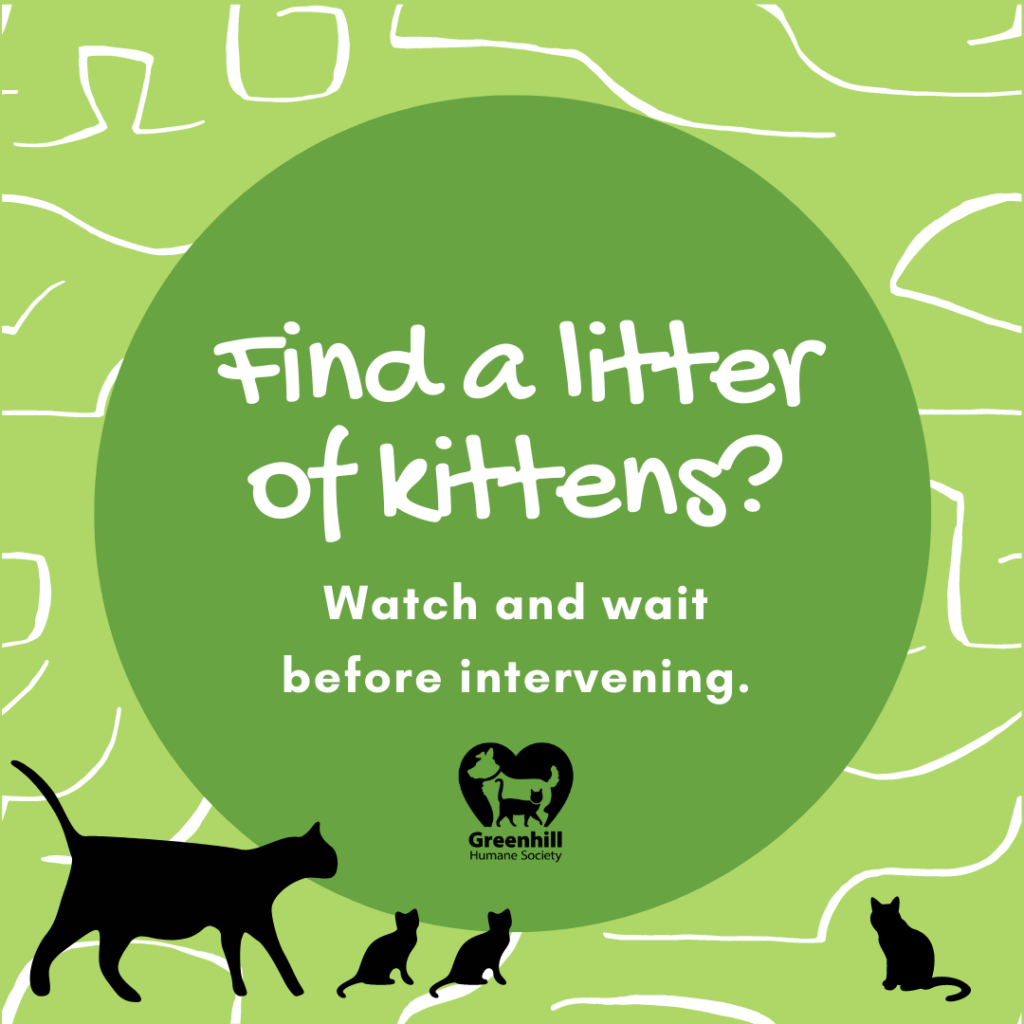 The mother cat offers her newborn kittens their best chance for survival, so wait and watch as long as you safely can, and consult Greenhill Humane Society or your veterinarian before approaching or touching the kittens. You can call Greenhill every day from 11am-6pm at 541-689-1503 or you can utilize our lost/found chat box 24/7 here.